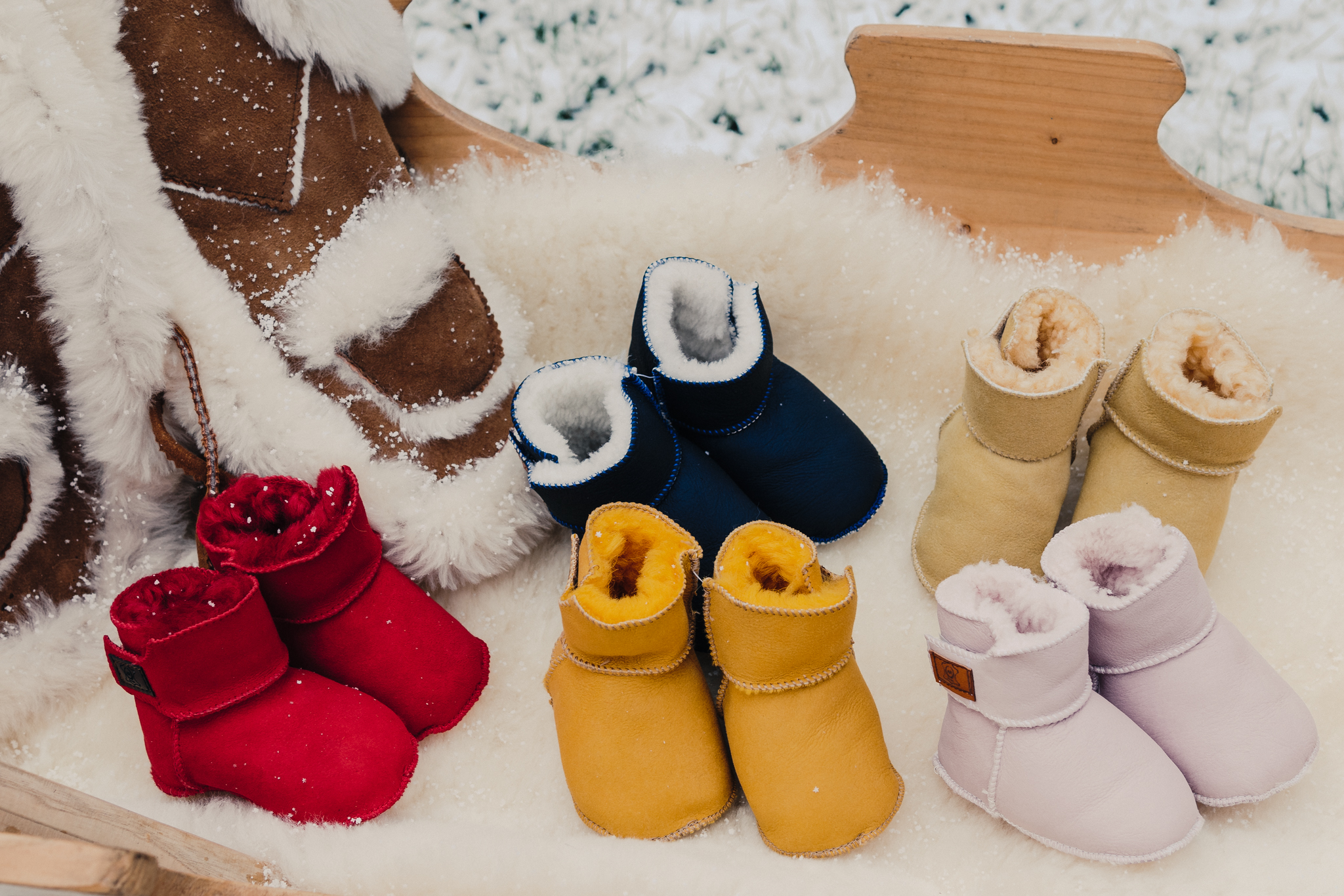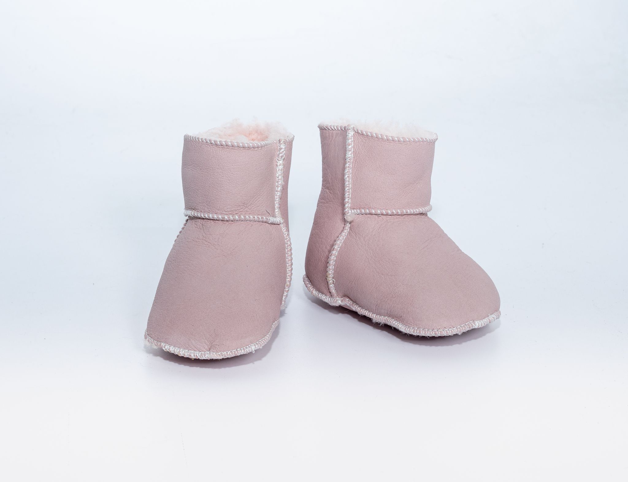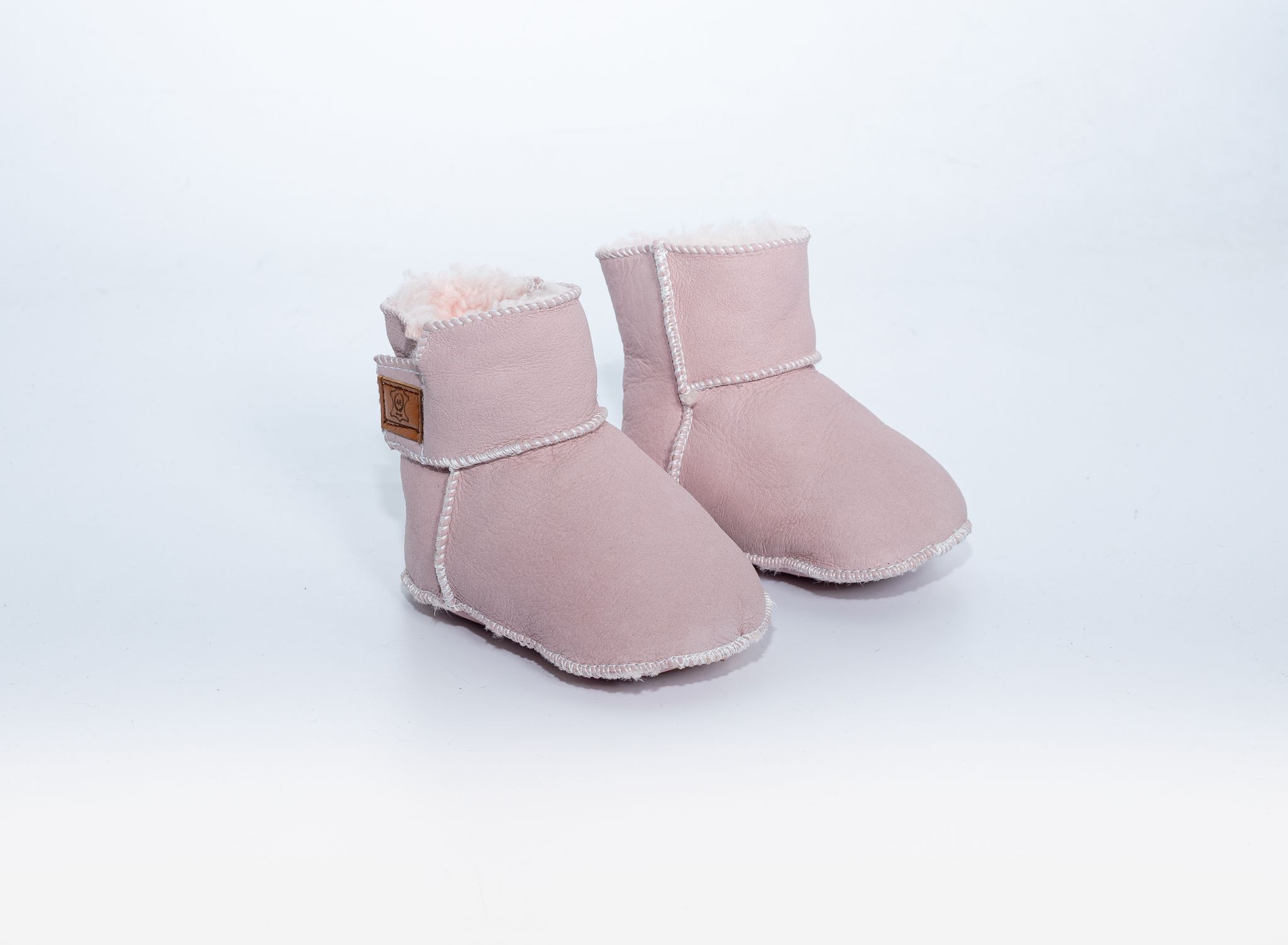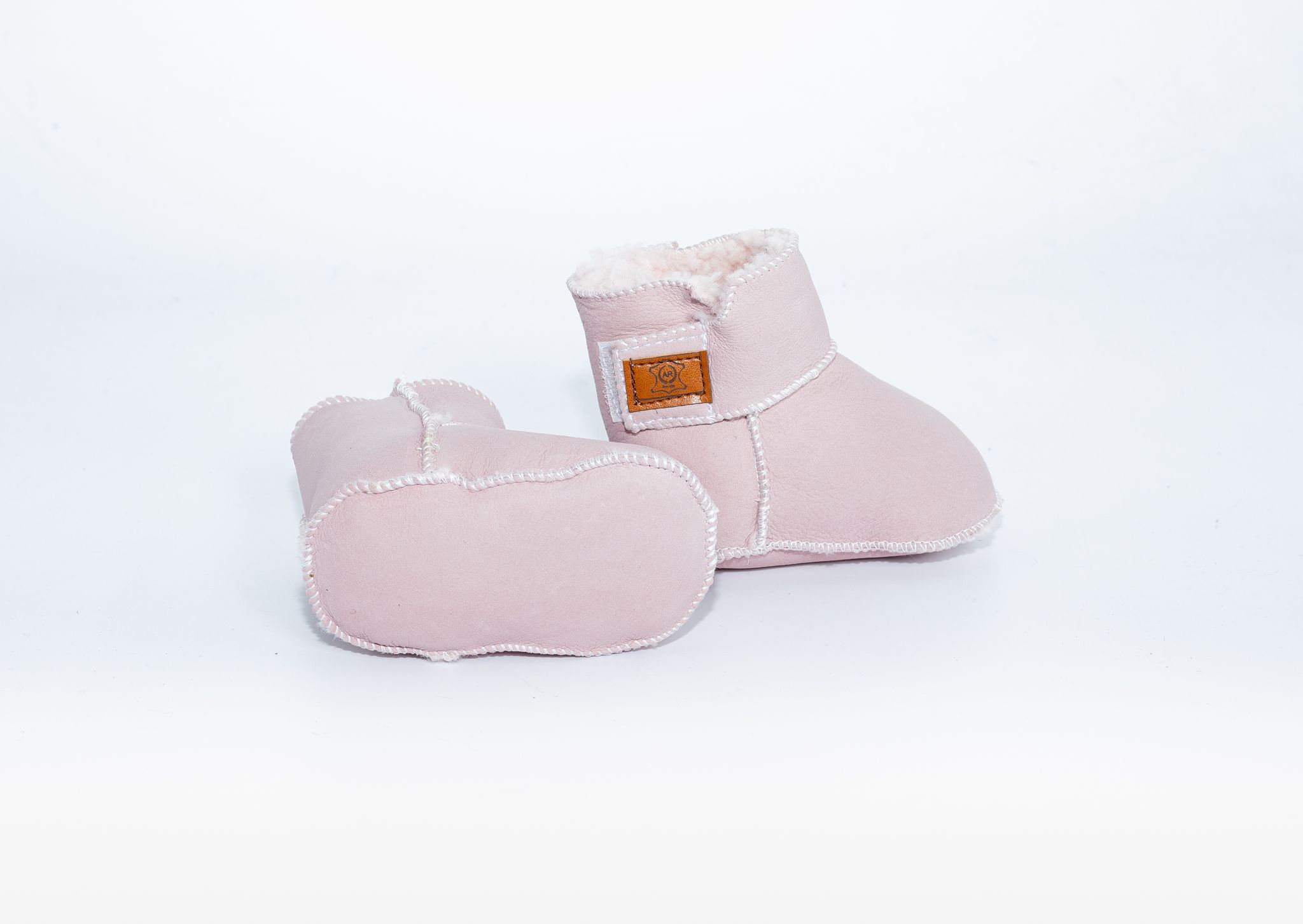 Buciki dziecięce wykonane z delikatnej skóry jagnięcej.