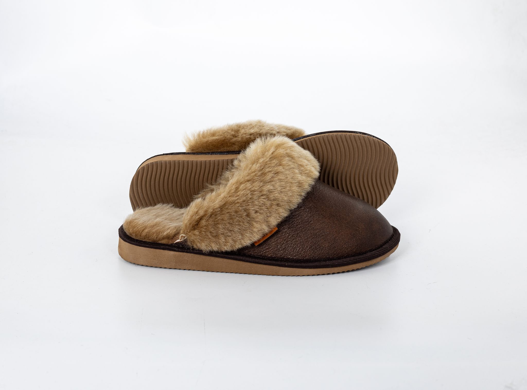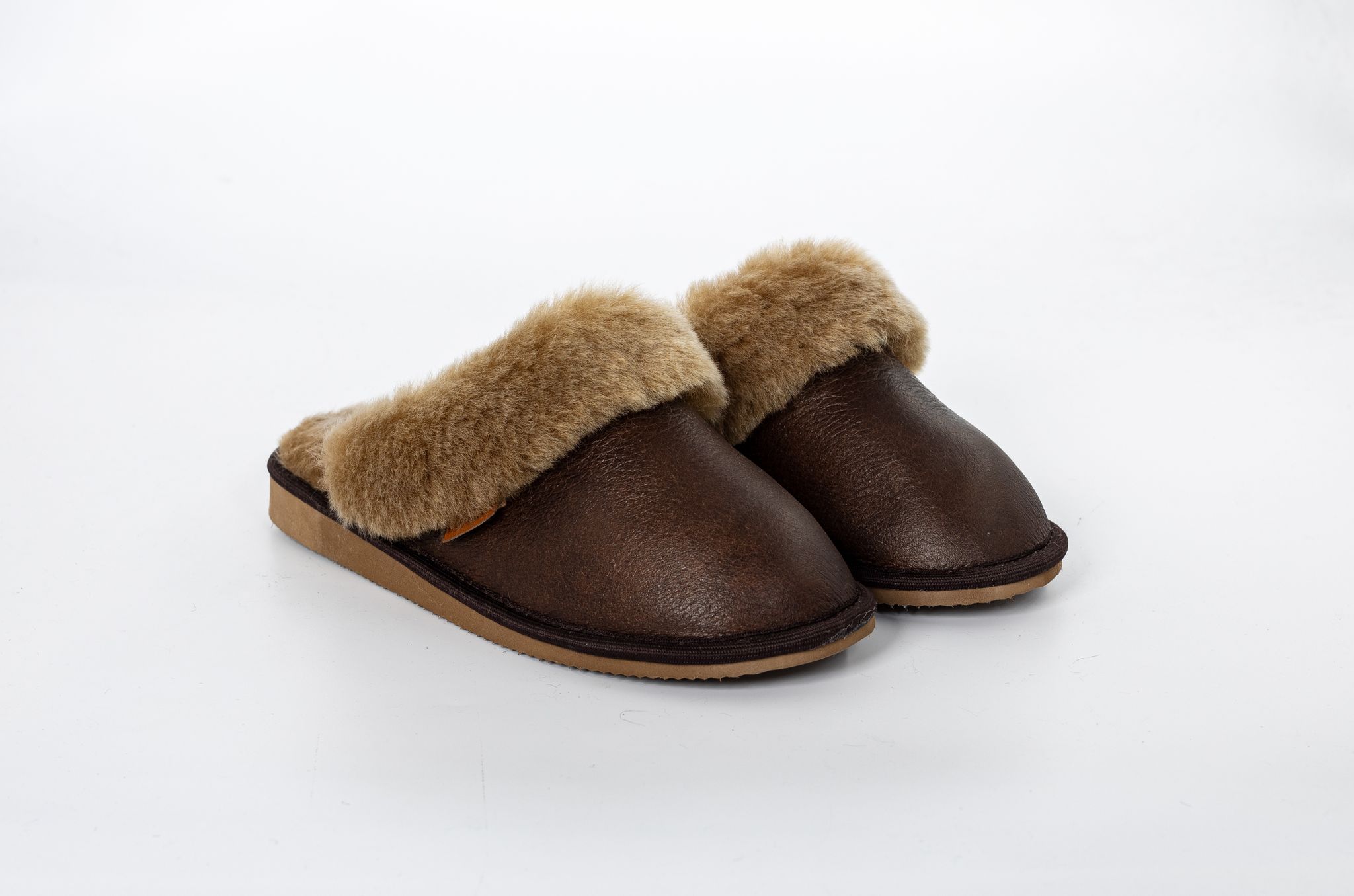 Pantofle skórzane model 001 brąz licowane